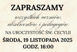 Serdecznie zapraszamy na wspólne świętowanie wspomnienia naszej patronki św. Cecylii.